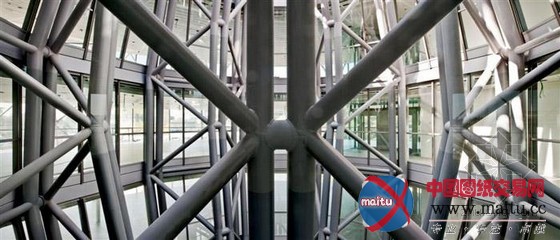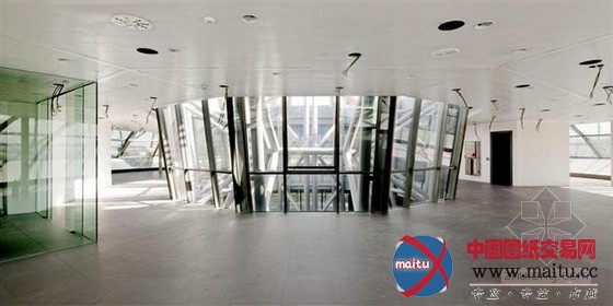 球形修建从地下空间拔地而起,南侧稍有变形。球体靠中心一系列布局支持,修建以此为中心悬浮在地下室上方,以外空间没有别的柱子,更多的光然进进室内,这同时有益于节俭能源。内部用于办公室和研讨举措措施空间。