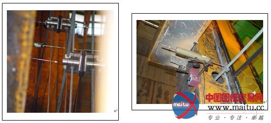 图6.用位移计测量中部玻璃与索变形量、边部索变形量