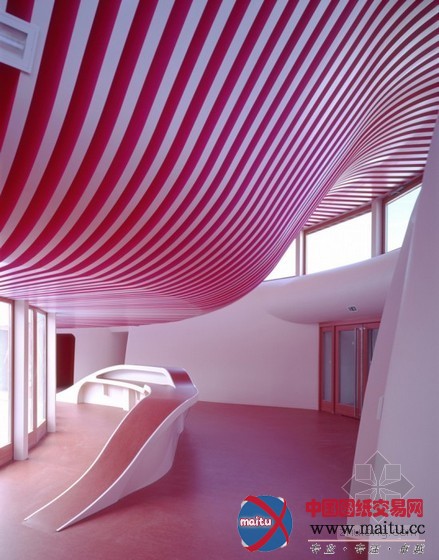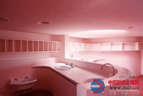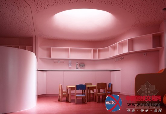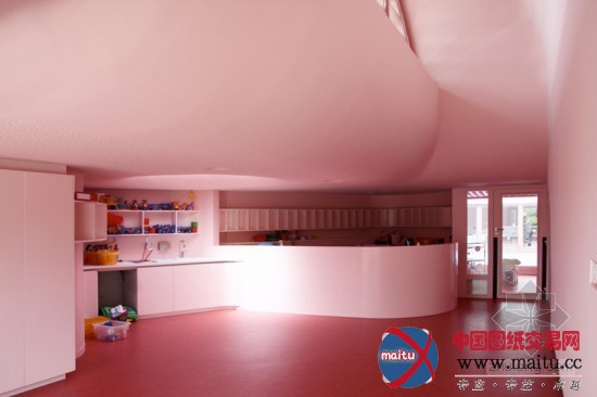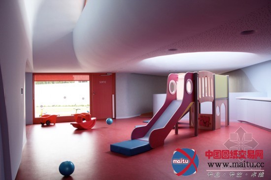 幼儿园临近街道,计划偏重于为儿童供应一个安好,美好的环境。一个连续的曲线形状的墙将幼儿园圈起来,由对外开放的向内凹陷的孔洞可以进进幼儿园内。考虑到幼儿园的内小朋友的安然和家长的便利,计划针对性的计划了幼儿园墙体、和空间举架的参数。幼儿园从中心操场,以向外辐射的体例安排课堂和办公区,由曲折的墙壁作为地区分开。天花板和室内墙壁都被计划的起伏不平,显得非常的俏皮。