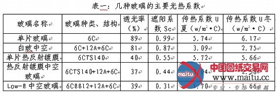 注:白玻指普通透明玻璃;6C流露表现6mm的透明玻璃;CTS140是热反射玻璃型号;CEB12是Low-E玻璃型号;U是美国ASHERA尺度前提下的传热系数。