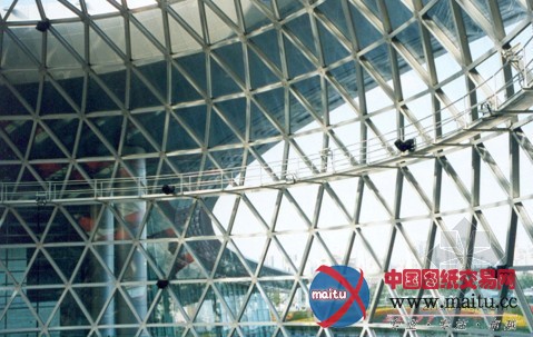 按照修建师的请求,大年夜球体在远处看的结果应是反射率低,减少眩目光;在近处看应有通体透明的感触感染。对跨世纪的庞大年夜工程,我们考虑修建师的计划意图,有连络节能环保型墙体旭日东升的天色,经多方切磋和研讨、对比,决定采取低反射(Low-E)中空夹胶玻璃作为大年夜球体的外墙装潢(见图3)。这类玻璃的最大年夜特色是将远红外热辐射发射出往,使其不克不及透过玻璃从而起到节能隔热的感化,是天下上公认的环保节能型材料。