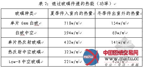 在以下前提下对几种玻璃的传热量按(式1)举行计算,计算结果列进表2中:夏日白日室外35摄氏度,室内20摄氏度;冬季夜晚室外零下10度,室内温度15度。