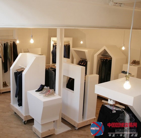 伦敦背景计划师 Gary Card完成了这间伦敦东部的旗舰店室内计划项目,此中包含一个通亮的橙色管道构造。这个管道构造由原木和橙色丙烯板构成,周围被一团团的木制展现架及展现网格所围困。打扮摆设在另外一间房内白色如房子般的衣柜中,而套装则吊挂在一个个黑箱子中,箱子悬在一个阴暗的灰色调地区内。册本及音乐类产品呈列在十字形交织的木制搁架上。