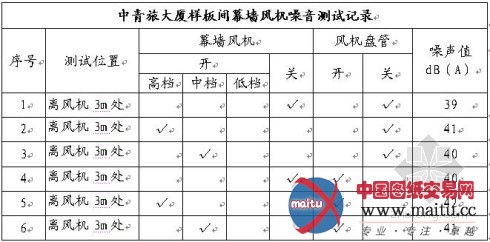 为了慎重,在大年夜量安装幕墙风机之前,我们在样板间的吊顶及门窗封锁的状态下做了尝试,测得以下数据: