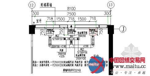 1)因为中青旅大年夜厦幕墙呼吸体系室内顶部的空间不敷,因此不克不及设置通风管道,只能采取吊顶集气箱,让气畅经由过程百叶上端718mm×100mm宽的吊顶集气箱后再排挤室外。吊顶集气箱直接连接到以玻璃宽度为中心的外墙框架上。