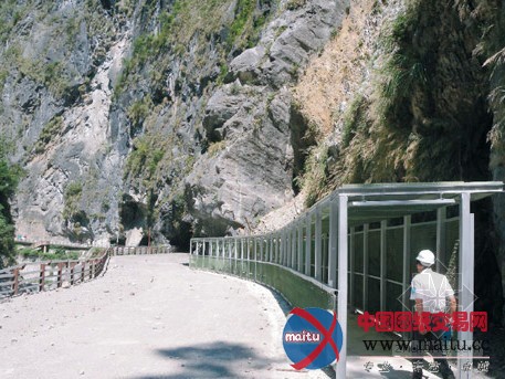 管理处期间曾与旅游业者和公路局、林务局等单位商讨,末了决定在步道内架设近40公尺FRP防护廊道,经测试,厚度3.8公分的FRP可反对12公尺高、20公斤重的落石撞击,26.8公斤的岩石也仅在FRP上造成印痕,反对结果优良。
