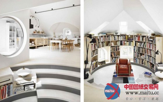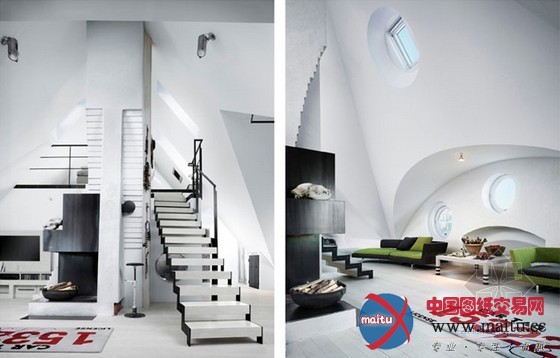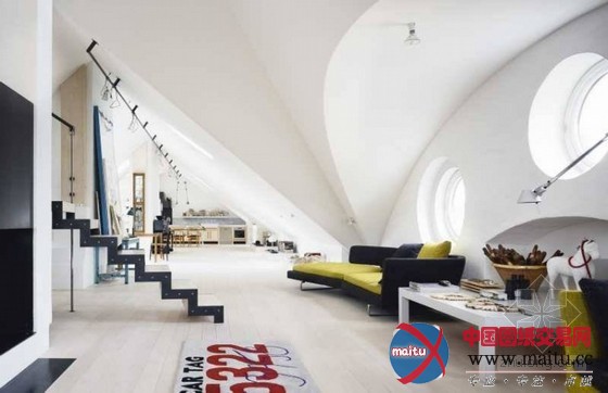 艺术家Carouschka Streijffert在瑞典斯德哥尔摩打造了这栋阁楼事情室的室内计划,它坐落在一栋年代长远的修建物顶层,其U形的阁楼式顶层公寓在瑞典都城中心可谓是一栋胡想中的室第。