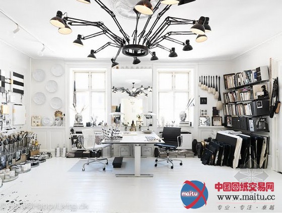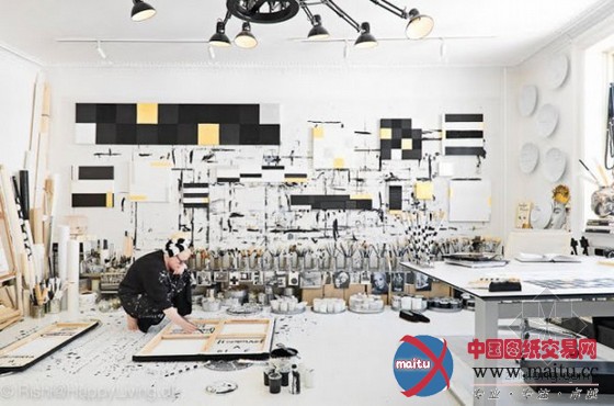 来自丹麦的艺术家 Tenka Gammelgaard 建立了一间主色调为诟谇两色的事情室,两种让人畏敬而又经典的色彩组合在一起,更加凸显了艺术家的张力。