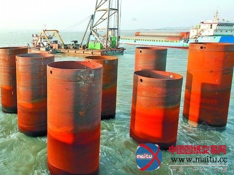 在建的泉州湾跨海大年夜桥共有南北两个主墩,两个主墩上部为两个索塔,高度均为157.1米,每个主墩根本由24根桩径为2.5米的钻孔灌注桩及承台呈矩形构成。