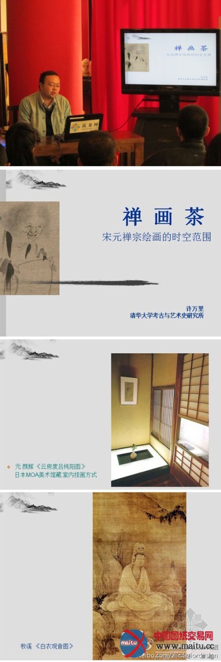 此次活动,我们还特别请到了清华大年夜学考古与艺术史研讨所许万里,因为希看能从一种其他的角度给计划师朋友更多的感悟和收成,徐万里则从宋元禅宗绘画的时空范围报告了他眼中的禅、画、茶。他不但带来了许多别有深意的画,也从另外一个角度报告了禅画及中国禅与日本禅的辨别。许万里的讲授让计划师朋友对禅画有了更多的熟谙,而这些艺术方面的交换也一样成为计划的灵感来源。