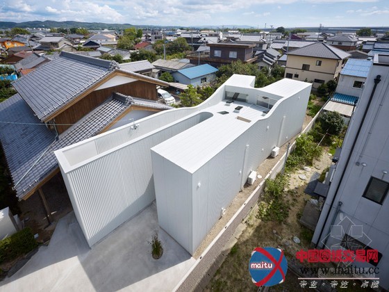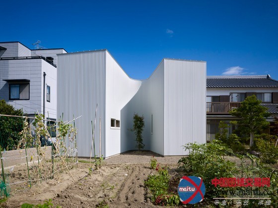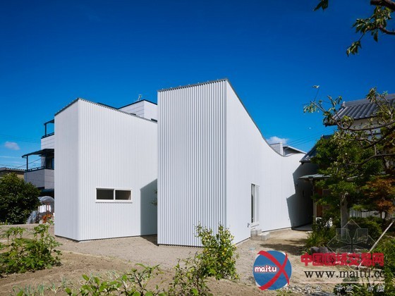 日本修建事件所katsutoshi sasaki比来完成了“oshikamo室第”,这座独立别墅位于日本爱知县的丰田室第区内。修建两端各构成了两条略微分离的侧楼,中心开放的部门为家庭成员之间供应了相互交换的空间。竖条纹白色面板包裹了全部修建体量,从直线形的外部直墙到两侧凹陷的曲线墙面,修建师慎重的留出位于正立面的主进口和室第后背树木的地位。