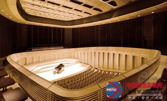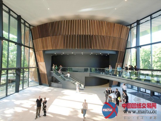 修建的声学达到了高尺度,这特别非常有助于门生的学习。同时客户在最初就明白这个新的修建也是社会变化的催化剂,能促进跨界的大年夜范围艺术互助。修建将三个独立新修建和一个翻新修建整合在一个巨大年夜的浮顶之下。修建极新的立面中,室内吹奏厅部特别饰前额的杉木板条,与树影相互掩映。内部是木料与石材构成的热和空间。修建两侧均有进口,一侧联通到公园。画廊承担创作发明艺术类的展览空间,也是修建的“肺”,是一个天然通风,与外界紧密接洽的空间。
