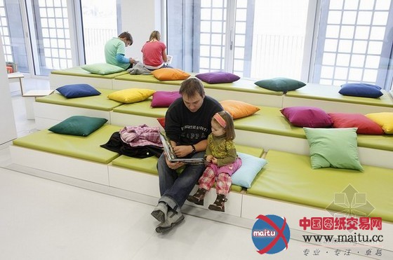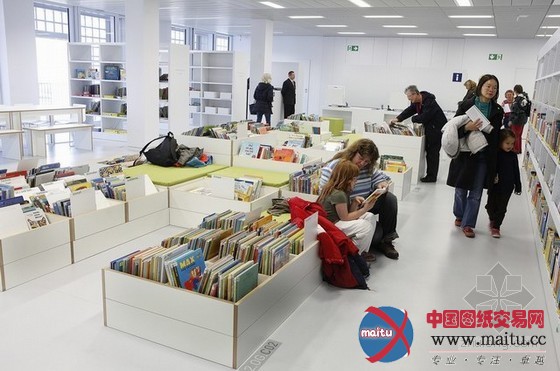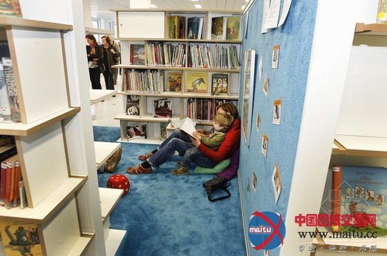 藏书楼中当然还少不了咖啡厅,这里的咖啡厅名为LesBar(译为读书吧)。馆中还专门设有供孩子们浏览的地区,这里色采雄厚,家具低矮,书也都放在低矮的木箱中便利他们拿取。