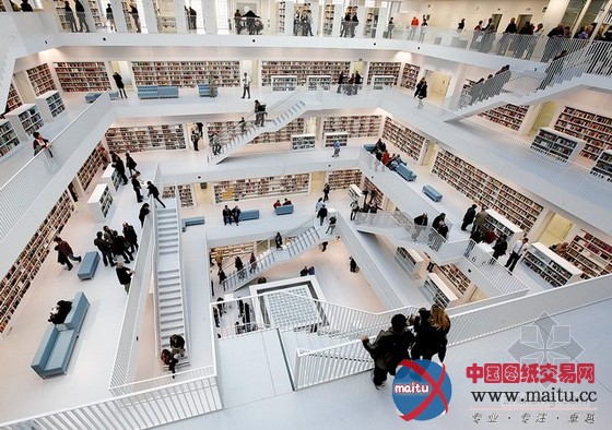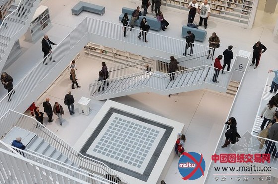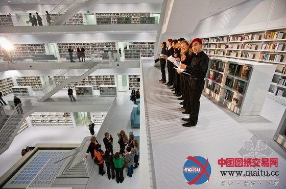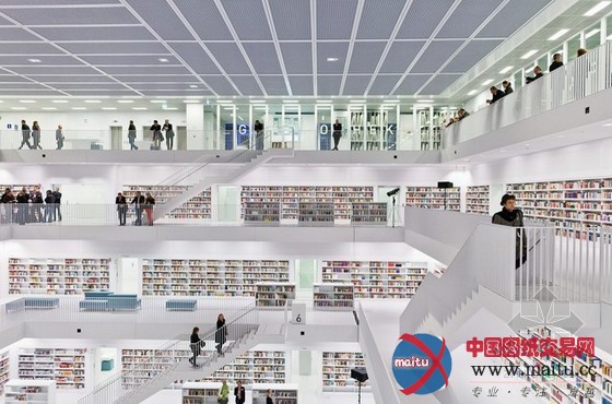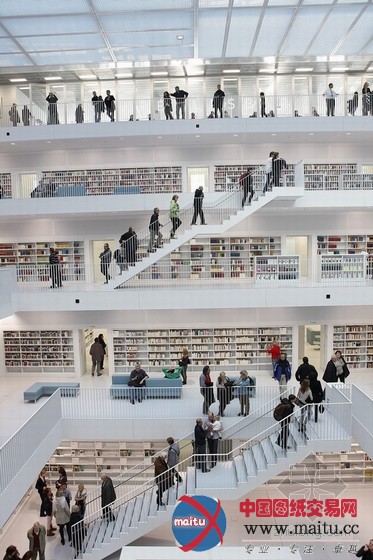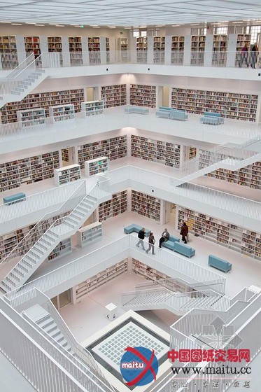 斯图加特市新藏书楼(The New Stuttgart City Library)内部空间特别非常开阔,全部供借阅的图书都可一览无余,图书像超市货架一样被有序的摆设着。或许你会感觉全部白色的空间氛围略显乏味,但其实图书才是这里的主人。其次这里的最大年夜特色你或许发明了,没错——楼梯,这些看似庞杂的外挂楼梯让你可以在上楼的同时一览全部藏书楼布局,上楼的同时也在摸索这个环境,这必然很风趣!