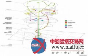 龙卷风——visiondivision计划的台北歌剧院计划。名字取材于修建独有的形状,修建外不雅的每个分段上,都附有曲折的叶片,以利用高空风能。修建进口处和内部嵌进了大年夜量的珍珠状丙烯酸球,以烘托修建的艺术咀嚼。遗憾的是该作品末了并未胜出。