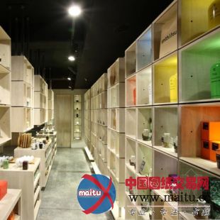 这是由瑞士丹麦计划师Carsten J·rgensen为台湾茶叶品牌smith&hsu计划的,总计两层高。一楼是展现产品,楼上是饮品区。罐茶和二手书分离式的展现在台北的这个茶社的积木堆的展台上。、