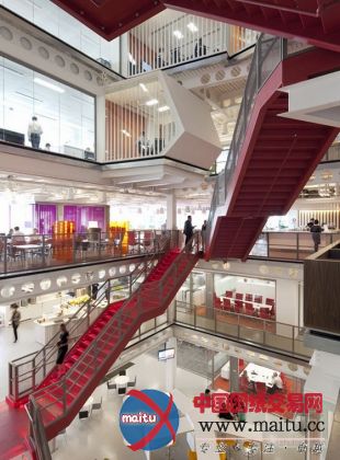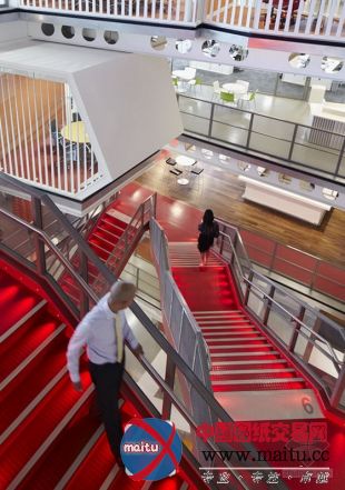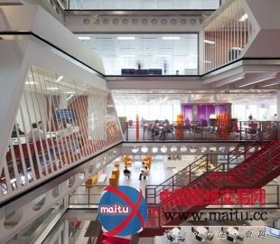 美国计划师 Clive Wilkinson 为 Macquarie 团体所作的办公室计划。可以看到从修建主体探出来的集会室区尤其凸起,有点像《少数派陈述》里贴在修建外不雅的观点车,为计划增加了很多将来气息,很科幻。