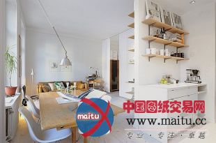 这是一个只有三十九平方米的小公寓,但是它内部的安插和计划完整可让一小我住得舒恬逸服,开阔的厨房可觉得六人供应用餐办事,寝室是一个双人床,公寓沐浴在充足的阳光下,白色的墙壁下是褐色的沙发和餐桌。