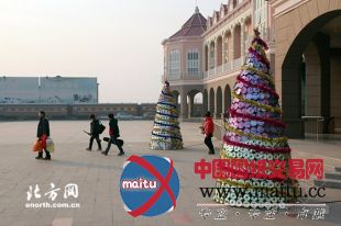 日前,天津热带植物不雅光园用1200余张废旧光盘制成了两棵圣诞树,希看用这类奇特的圣诞树唤起人们环保意识。