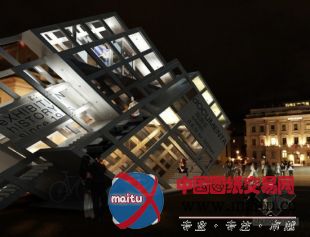 这个静止的景不雅式修建由一个倾斜30°角的构架体系构成,将墙与屋顶面板都拉倒至一个合适的地位,使得楼梯与地表都便于就坐。展馆将成为大众集会场合,作为音乐厅与演讲厅,并设置浏览与放松地区。这类奇特的造型仿佛是成心对文献展的性子作一回解读,又像是一个涵盖了多年来的汗青、政治和艺术变迁的隐喻的意象。展馆紧靠用地边线,在都会与活动地块游离。木质布局与周围的都会景不雅连在一起,程度地耽误,为全部人营建一种开放的景象形象与回属感。