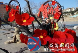 威海市人民广场安装“红梅迎春”景观