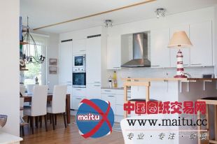 公寓采取斯堪的纳维亚计划气焰,共有三间房间。正中是开放式客堂,客堂陈列简略、当代,另有许多为客人预备的坐位。有一个吧台将客堂与厨房分开,厨房里的电器器具都是隐躲式的,橱柜上方的马赛克墙壁很抢眼。餐桌可供六人坐,配有豪华座椅。