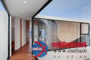 修建被视为一个团体,挖空而成的巨大年夜启齿构成了一个开放的姿势,舛错称的墙壁也让景不雅得以框定。计划的目标是让修建的外部和内部干系融汇,倾斜的墙壁和楼板的设置令住户在室内也能有尽妙的视觉体验,很大年夜程度将修建和景不雅接洽。在这个室第里,是室外景不雅构造室内景不雅的。