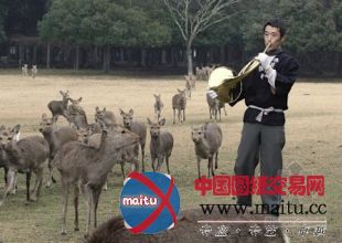 据报导,1日,在日本奈良市奈良公园,圆号的声音吸引来了许多的奈良鹿。