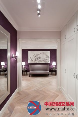 公寓室内计划由一名年青的计划师完成。室内有许多装潢品,内部装修属于新古典主义气焰。客堂地板和天花板采取淡色,门厅是紫色,给人奇妙秘密的感触感染,此处还挂了许多油画用以烘托氛围。加进了些许当代元素的古典气焰的家具,明快的色和谐热和的光影让室内显得舒服、富有兴趣又新颖。客堂和餐厅连在一起使空间宽阔,角落有吧台的计划深受大年夜众浏览。房间内还挂有许多画,为房间增加了高雅的氛围。