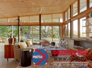 室第坐落在Santa Lucia 保重区连绵的群山的松软地盘上,夸大年夜与大年夜地的接洽干系。计划师在制作者栋当代的牧场式单层平房时采纳办法尽大概不粉碎周围环境,比方采取可收受领受建材。室第房间低矮,共有两间寝室,两个全套卫浴 一个部门卫浴,另有有露天平台连接室阁房外,客堂和餐厅连在一起。制作时发掘地基多余的土被用来砌墙。土夯实构成的墙构成平缓的曲线,与周围的景色很好地连络在一起,另有极佳的储热功效,能均衡日夜温差。房屋周围有三个储水池,可以汇集雨水用来灌溉作物。房屋南面有大年夜的玻璃门通向门廊和带有遮阳棚的露天阳台,可供户外休闲,。天然通风装配使房间冬热夏凉。组合太阳能电光板能在不但不影响房间美不雅,还能利用太阳能供应全部房间须要的能量。