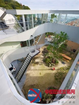 这栋名为“Toda House户田屋”的室第位于日本广岛的一个山坡上,其形状与广东客家人的围屋有异曲同工之妙,是一所螺旋式室第,是由东京修建事件所Kimihiko Okada计划。 “Toda House户田屋”的造型如统一个鸟巢,主体由几根纤细的银色金属柱托起,房间则绕成一个环形的形状,中心的开阔空间则构成一个天然的小院落。 室第更美丽的是房间的每侧都有一个室外平台,在这里可以轻松地俯瞰迷人的海景。