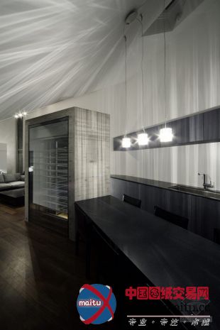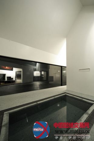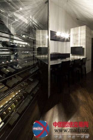 修建采取厚度较薄的150mm混凝土墙体,有用的增加了实际利用面积,并使室内和室外空间的鸿沟过渡更加柔和。全部室第内部是曲折勉强颀长的一室空间,如许的结构造就了奇特的布局情势。以门厅/蕴躲室为解缆点,各个功效区顺次摆列,厨房/用餐区,一个小型酒窖,起居室,卫生间一侧的走廊穿过一个玻璃房通往寝室,浴室在寝室电视墙的另外一侧,随后是换衣室,最终达到车库。空间布局的独到的地方在于各个功效区之间利用小酒窖,走廊和电视墙举行奇妙的分开,这让各空间柔和过渡的同时保持相对独立。
