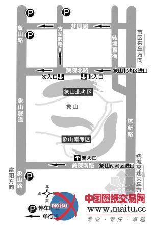 象山校区周边的美院北路实行东向西单行线,视环境对美院南路、梦园路、方家畈路也履行单行线;象山路、杭新路、转塘直街、留转路承诺双向通行。