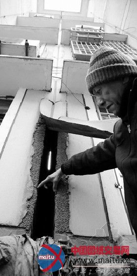 顺着他指的标的目标,记者发明,这道沉降缝现在成了一个“三角形”,3单位与4单位顶楼“密切无间”地碰撞在一起。