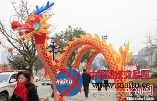 2月3日,行人正穿过立于湖南长沙开福寺路的龙形彩灯。