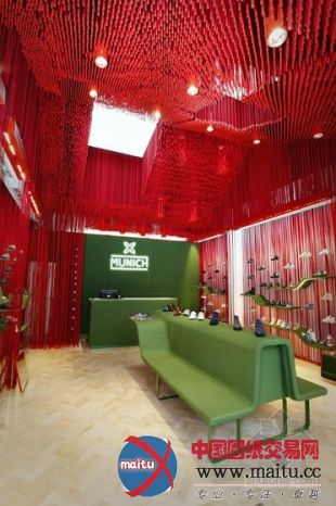 这是MUNICH(巴塞罗那的一个休闲活动鞋品牌)克日在爱尔兰开了一家新店,这是该品牌在爱尔兰的第一家店,地位在Kildare Village购物中心。DEAR DESIGN修建事件所是这个项目标计划方,店面共60平米,它与别的MUNICH鞋店的计划内涵一样:表现艺术感。室内给人一种热和舒服的感触感染,让主顾感触感染宾至如回。为了达到这类结果,DEAR DESIGN利用了特别非常简略、平常的材料举行装潢,比方防火的MUNICH鞋带等等。6,700米长的赤色鞋带环抱胶葛、装潢了全部鞋店。鞋带起首笼盖了全部天花板,然后像摆锤一样垂下来。