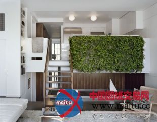 计划师还新建了从五层楼板耽误出来的悬臂式吊舱布局餐厅,扩展年夜了厨房的空间。吊舱布局餐厅外外不雅是定制的垂直花圃墙。客堂里另有倒影池与垂直花圃相辉映,池里另有色彩光鲜的金鱼。倒影池即能为垂直花圃储存灌溉水,又创作发明了安好的室内水景花圃。