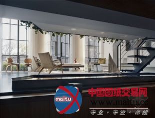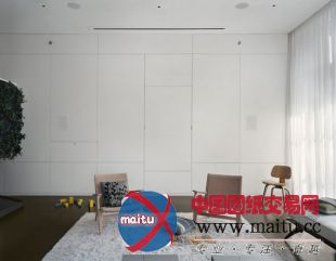 建材包含染色混凝土,美国黑胡桃木,青铜和钢,另有当代主义外不雅材料,包含铜绿,超光芒外不雅漆等。客堂兼餐厅是整栋公寓的中心。