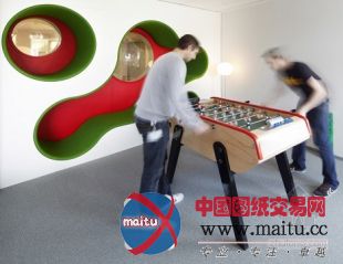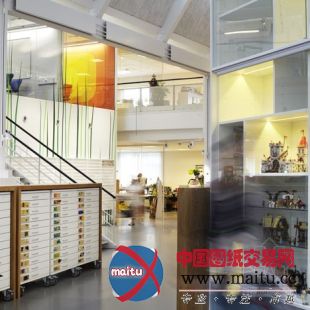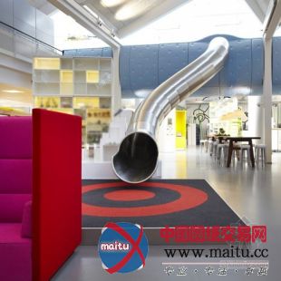 这栋乐高开放式办公室是在但没比伦德,是由Rosan Bosch和Rune Fjord计划,里有积木形的摆设柜,模型搭建桌和一个乐高制成品藏书楼。办公室夹层里环抱全部修建有八间集会室,集会室的前面是玻璃的,每个集会室里的色彩都不合。一层咖啡间的木桌上有圆孔,构成了植物种植槽和坐位前伸腿的空间。