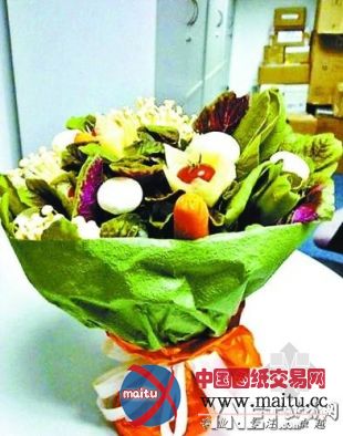 “别把金针菇不当花儿。贫民浪漫专用。”恋人节前一天,一张特别的花束照片在微博上被世人转载,成为存眷度最高的恋人节礼品话题。与鲜红的玫瑰或妖媚的蓝色妖姬比拟,这束花显得很普通,其最大年夜的特色是整束花是由各种蔬菜生果等食材颠末经心穿插组合而成,材料包含金针菇、菠菜、胡萝卜、小番茄、紫甘蓝,乃至另有几个白煮蛋。网友“半岛都会报封肖丽”歌颂说:“妈妈咪呀”这个恋人节可以送,送完了百口吃一顿!