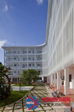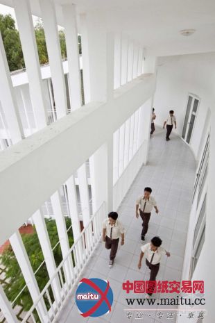 Vo Trong Nghia计划的越南平阳黉舍,位于越南胡志明市,修建位于5300平方米的雄厚地盘上,构成了最大年夜高度的五个层次,被周围丛林高度围困的景象形象。修建的外皮是预制混凝土天窗和带有图案的墙壁。这些遮阳设备产生半外部空间,这些开放的地区就制止了阳光直射,构成了像走廊空间的天然通风体系。全部的课堂都连接这个半开放的空间,为西席和门生谈天,相同和浏览天然供应了场合。