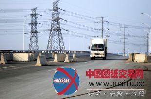 一辆小货车颠簸着经由过程看虞河大年夜桥姑苏段进口处的路障。