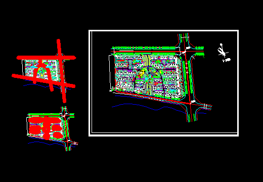 某小区规划及景观设计,图纸内容包括景观规划总平面,交通分析及景观实现分析图。