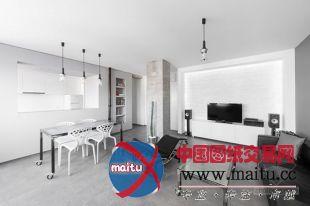 极简公寓是一个70年代修建改革室内装修计划,公寓室内装修计划采取中性色调,简练的家具,混泥土原始的墙面,暴露的财产安装管道,公寓原始天然。光芒晖映下白色的窗帘与室内构成光鲜对比,超当代餐饮椅子、一个挂椅装潢装点让这个公寓空间极具本性魅力。