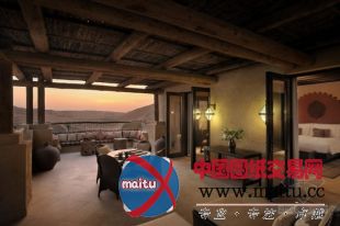 套房:单寝室套房空间开阔,客人可于房间内坐拥周围曲折富丽的戈壁景色。在阳光晖映下的各处室内细节,纯手工制作的木茶罐上有金箔和铜制雕饰褶褶生辉,与窗外令人赞叹的戈壁景不雅交相辉映。