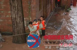 图为暴雨造成重庆梁平县内涝严峻,消防官兵救出被困人员。