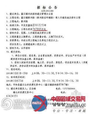 温州平阳现“雷人”招标公告 要花74亿修人行道