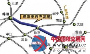 绵阳至西充高速公路,起于三台县永明镇,与绵阳绕城高速公路南环线相接,并与绵阳至遂宁高速公路构成十字关头互通,经盐亭至西充,与广元至南充高速在西充相接,利用广南高速12千米至南充市,新建里程全长123.62千米,双向四车道,计划时速80千米,全线共设永明、江家湾、占山、龟石4个关头互通立交,估算投资101.6亿元。