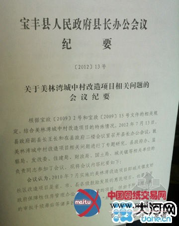 记者从一份2012年7月25日印发的“宝丰县人平易近当局县长办公会议记要”上看到以下文字:鉴于该项目标特别性,扶植所用地盘可按“先予供地、边建边批”编制进行,对其背规扶植的惩罚,不再按相干法度实施……