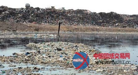 在大年夜浦沟固体废料综合措置场糊口垃圾填埋区,水面漂浮着各类垃圾。